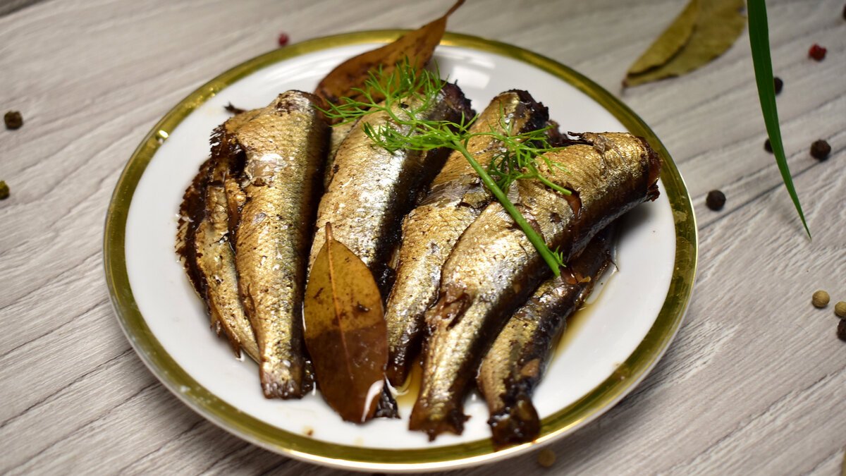 2 кг тюльки или другой мелкой рыбы, горсть горошин чёрного перца, 2 столовые ложки соли, 2 стакана растительного масла, 1,5 стакана воды, 4 луковицы, лавровый лист.