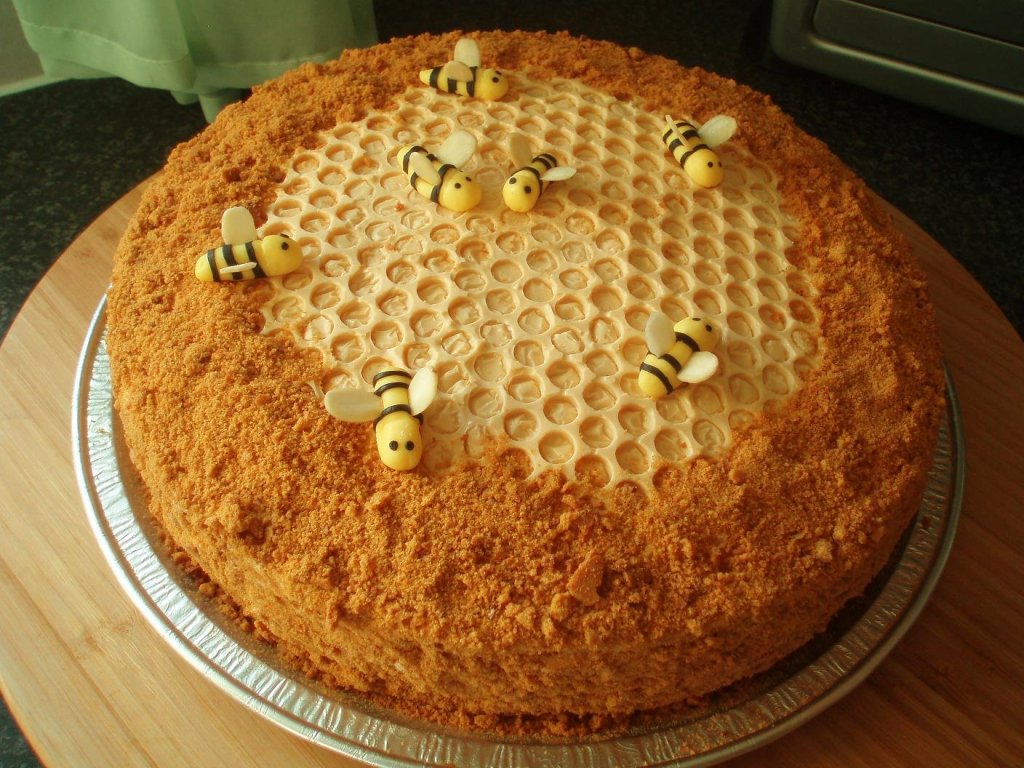 80 г мёда, 1 чайная ложка соды, 100 г сливочного масла (мягкого) , 3 яйца, 100 г сахара, 200 г муки.