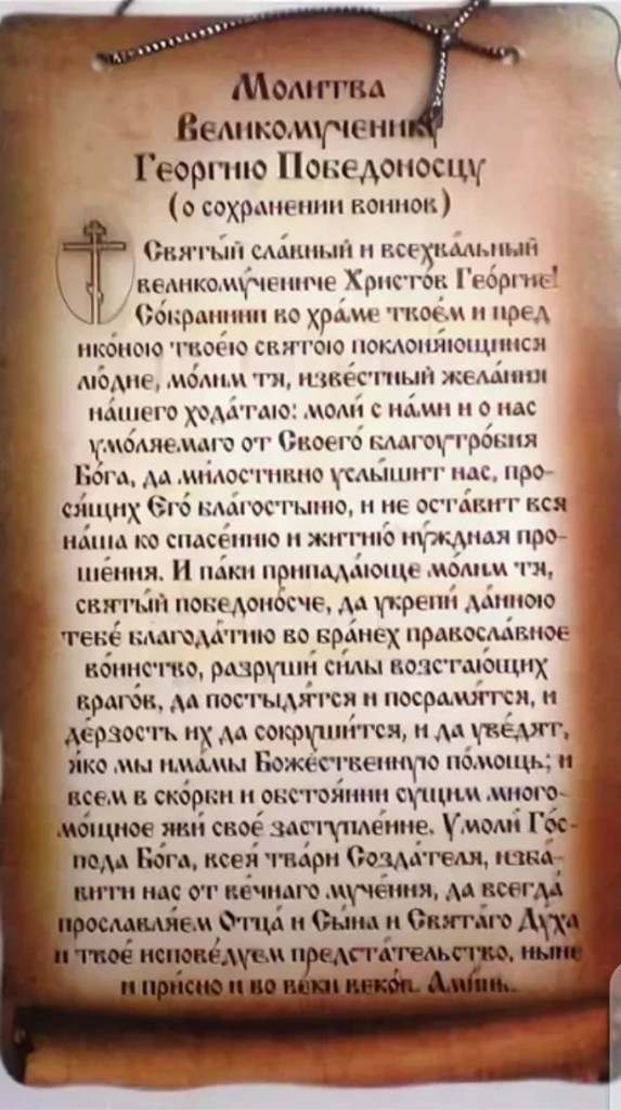 Необычную историю рассказал моему сыну его друг Василий. Прадед Василия, дед Жора, как его звали в семье, ветеран Великой Отечественной войны, успел рассказать правнуку, как он воевал и почему остался жив. Провожая на войну, мать Георгия Петровича дала ему с собой маленькую иконку Святого Георгия Победоносца. Она как раз помещалась в нагрудный карман. Ещё мать ему дала собственноручно написганную молитву ангелу-хранителю. Жора, тогда молодой комсомолец, поморщился, но взял. Мать строго-настрого приказала ему не потерять.
