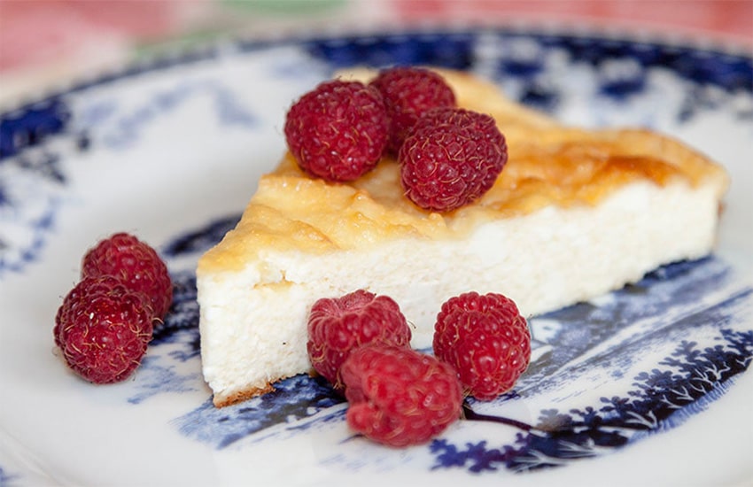500 г творога, 5 яиц, 2 столовые ложки сахара, 5 столовых ложек манной крупы. По желанию добавить изюм или курагу.