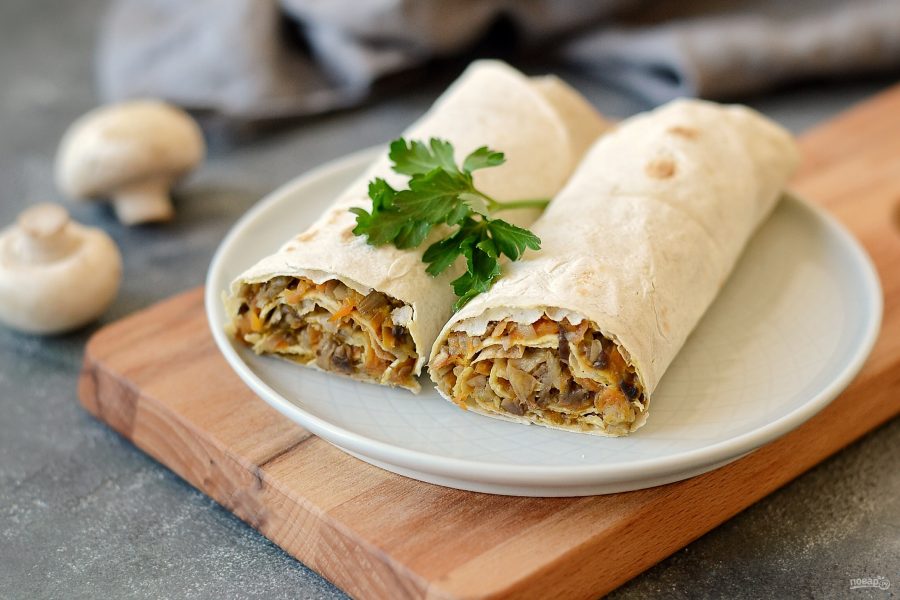 Сегодня я напишу, как быстро приготовить лаваш с грибами!