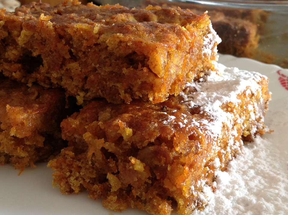 2 средних моркови, 1 стакан сахара, 2 стакана муки, 0,5 стакана растительного масла, 1 чайная ложка соды, 0,5 чайной ложки соли.