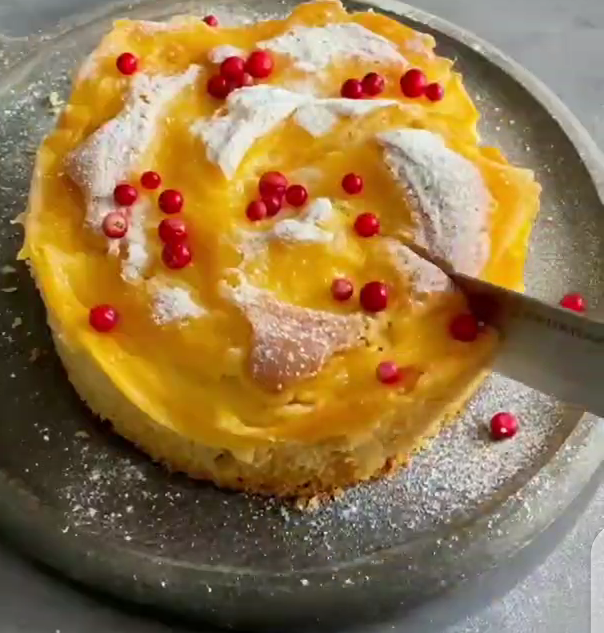 Для теста взбить яйца и сахар. Добавить, масло и молоко, взбить. Просеять муку с разрыхлителем и перемешать. Добавить очищенные и порезанные яблоки. Всё хорошо перемешать. Переложить в форму, сверху выложить заварной крем и отправить в разогретую до 180°С духовку на 35-45 минут. Готовность проверять зубочисткой. Остудить и переложить на блюдо. Украсить по желанию.