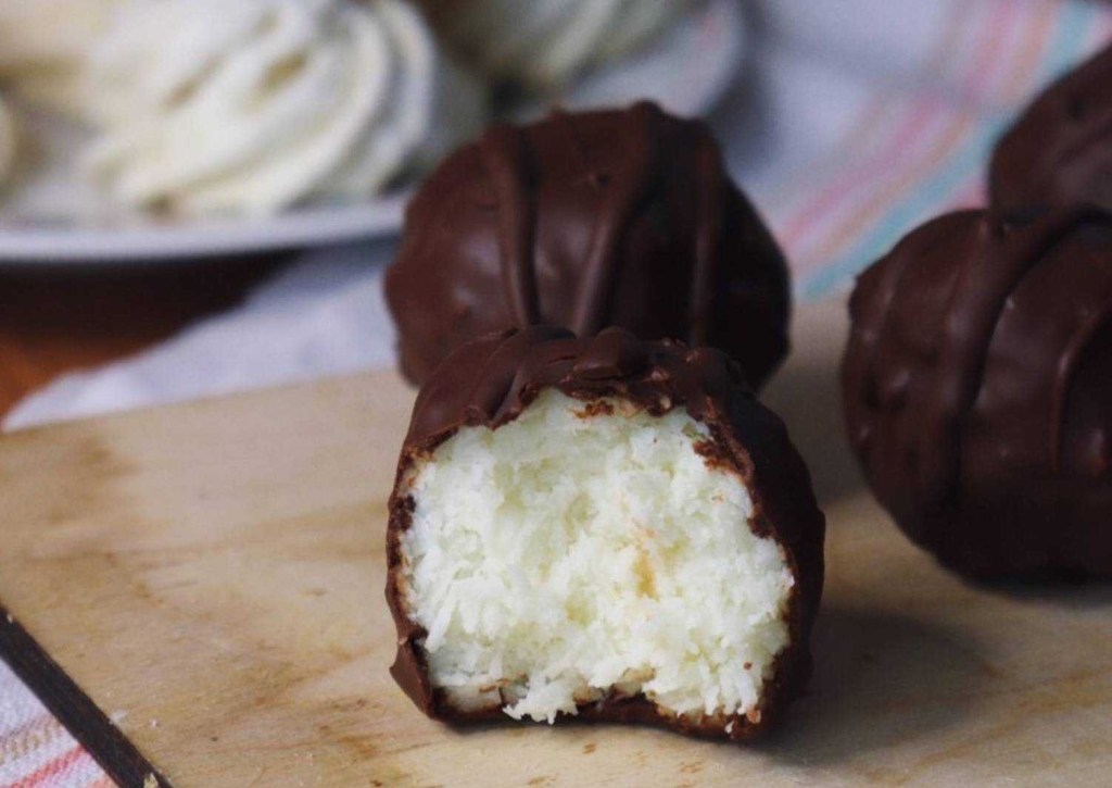 150 г кокосовой стружки, 140 г сгущёнки, 100 г шоколада.