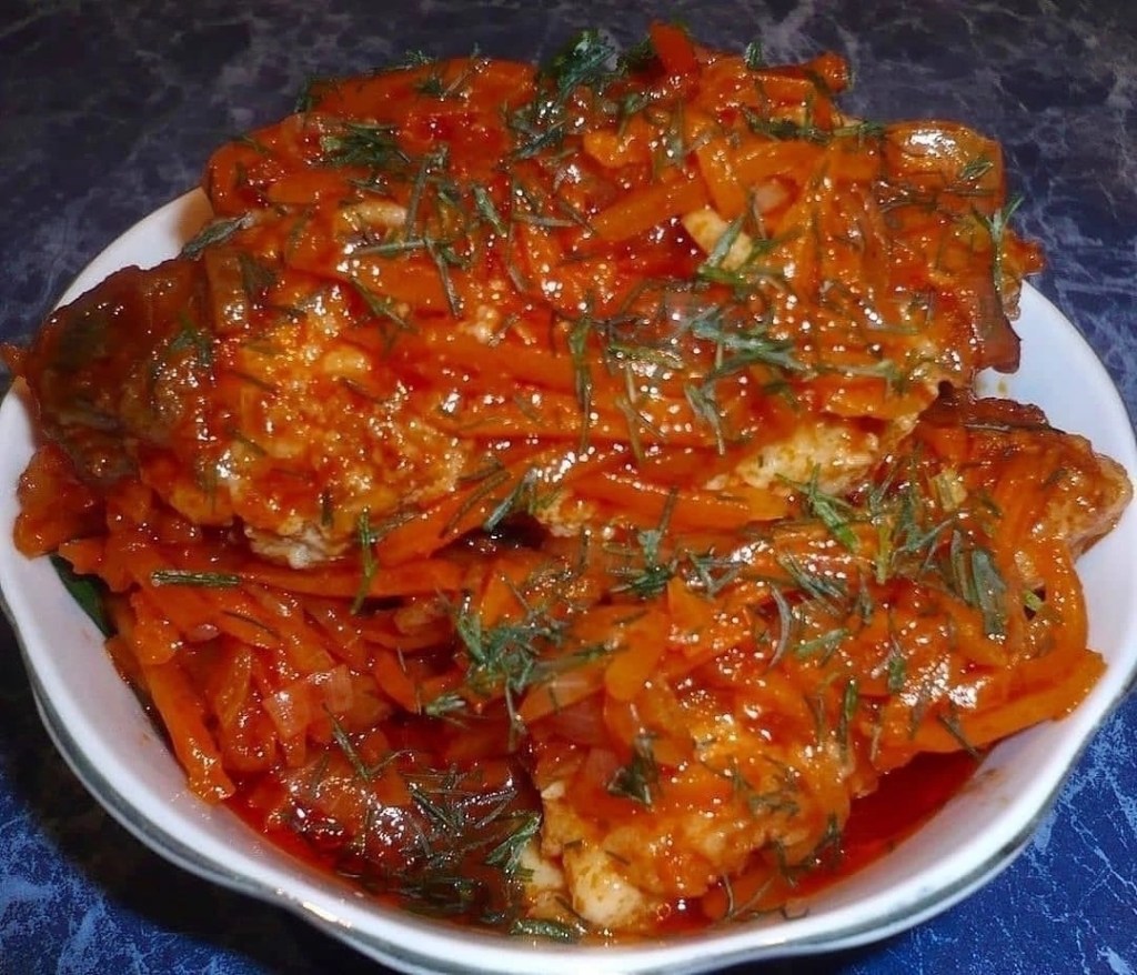 Сегодня я напишу рецепт вкусной рыбки под маринадом!