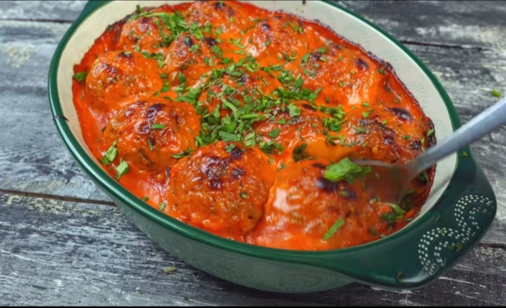 Достать шарики и полить сверху готовым соусом. Отправить в духовку еще на 15-20 минут при температуре 180 градусов.
