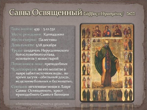 18 декабря день памяти Преподобного Саввы Освящённого!