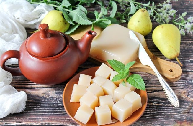 Грушевый мармелад на агар-агаре готов. Разрезать его на кубики и подавать к столу.