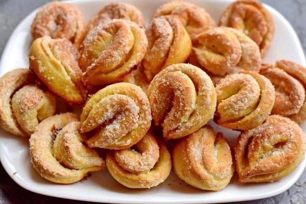 Свернуть кружочки в два раза, также окуная в сахар с одной стороны.