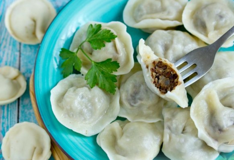 Сделать пельмени из теста и начинки.