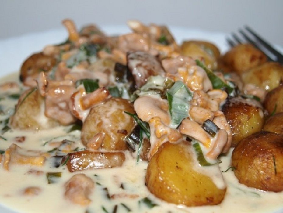 1,5 кг картофеля, 300 г лисичек (можно заменить шампиньонами), 300 г сметаны,
