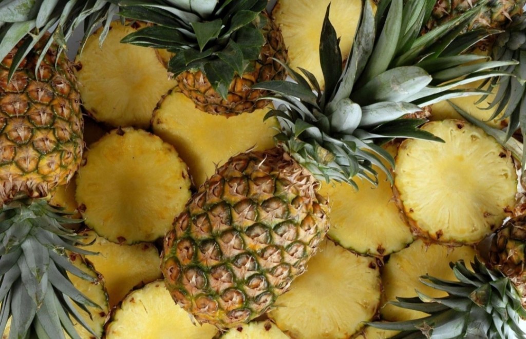 Наличие густой и зелёной ботвы, глухой звук при постукивании по кожуре ананаса, средняя твёрдость корки, зеленоватый оттенок ананасовой корки, ярко-жёлтая мякоть,
