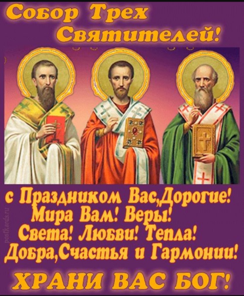 12 февраля день памяти трёх святителей Василия Великого, Григория Богослова и Иоанна Златоуста!