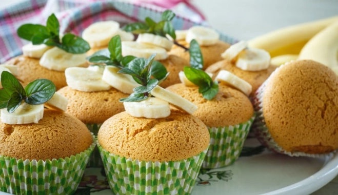 Духовку разогреть до 180 градусов. Выпекать в течение 30-35 минут. Получается 12 кексов.