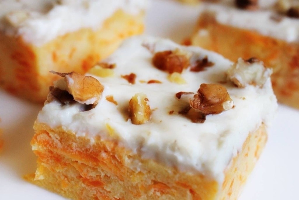 Смазать сверху запеканку кремом и отправить в холодильник на 30 минут.