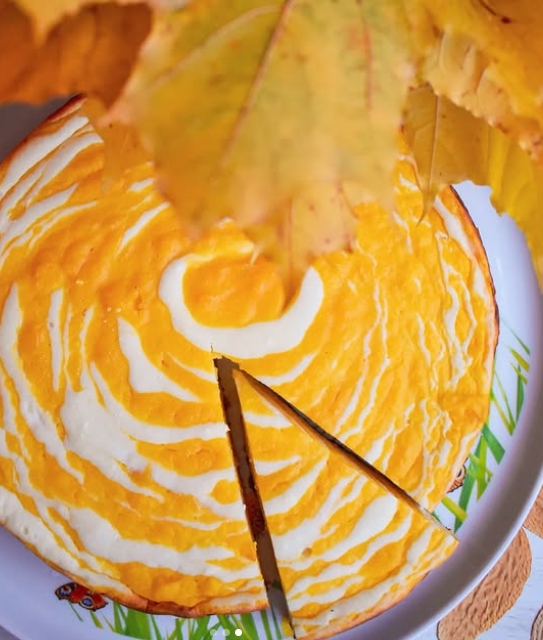 Тыквенный слой и творожный слой должны быть примерно одинаковой консистенции. Если творожный слой гуще, можно добавить пару ложек молока.