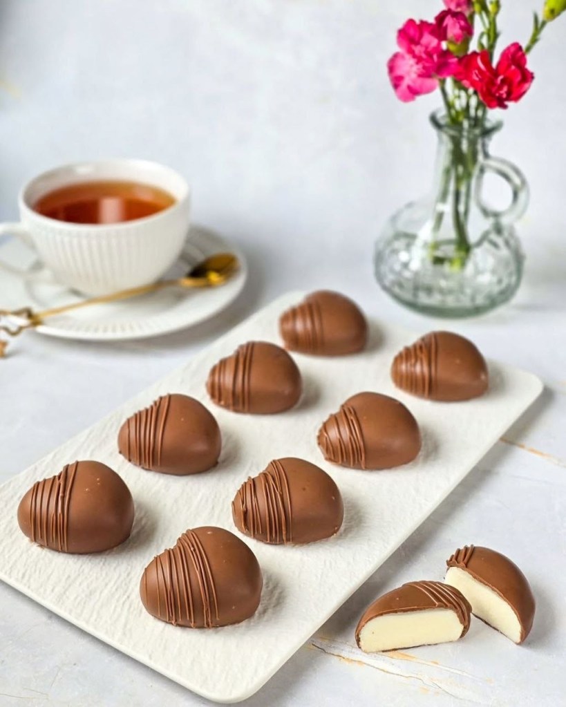 Можно окунуть в растопленный молочный шоколад или обвалять в какао, сахарной пудре или сублимированых ягодах.
