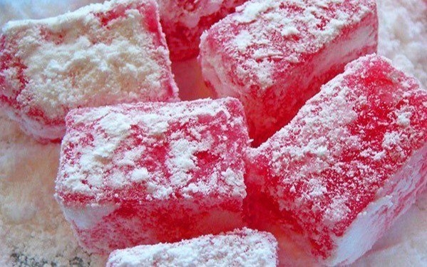 Поставить остывать и загустевать. Остывший рахат-лукум нужно нарезать кубиками и обильно посыпать сахарной пудрой. По вкусу можно посыпать ванильным сахаром, добавить рубленые лесные орехи или миндать.