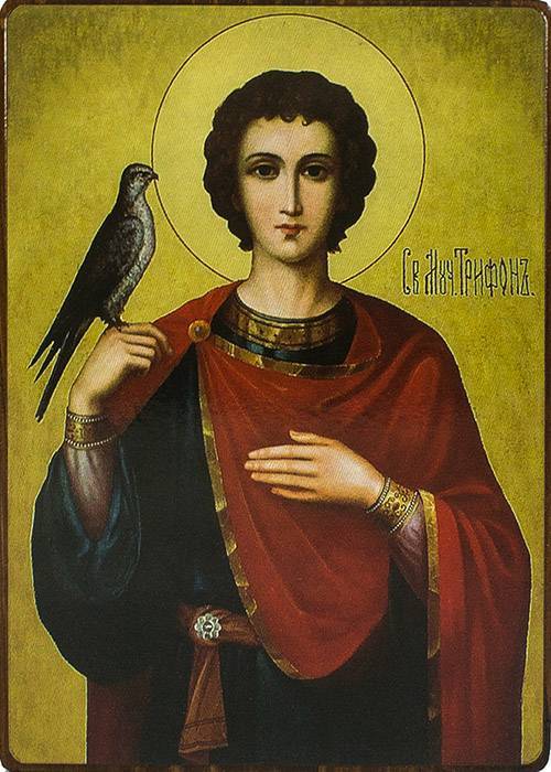 Святому мученику Трифону молятся: во всякой нужде, о работе, замужестве и счастии в браке, от колдовства, об исцелении в различных недугах, об изгнании бесов, при угрозе гибели урожая, в безденежье, голоде, трудных обстоятельствах, при затруднении отдачи долгов, когда утеряна вещь, чтобы она нашлась, чтобы укротить грозный нрав родных и начальников, от вреда насекомых, мышей, змей. Святому Трифону молятся охотники, рыболовы, виноградари.