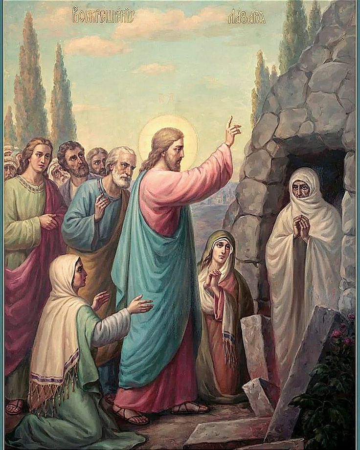 Сказав это, Он воззвал громким голосом: Лазарь! иди вон.