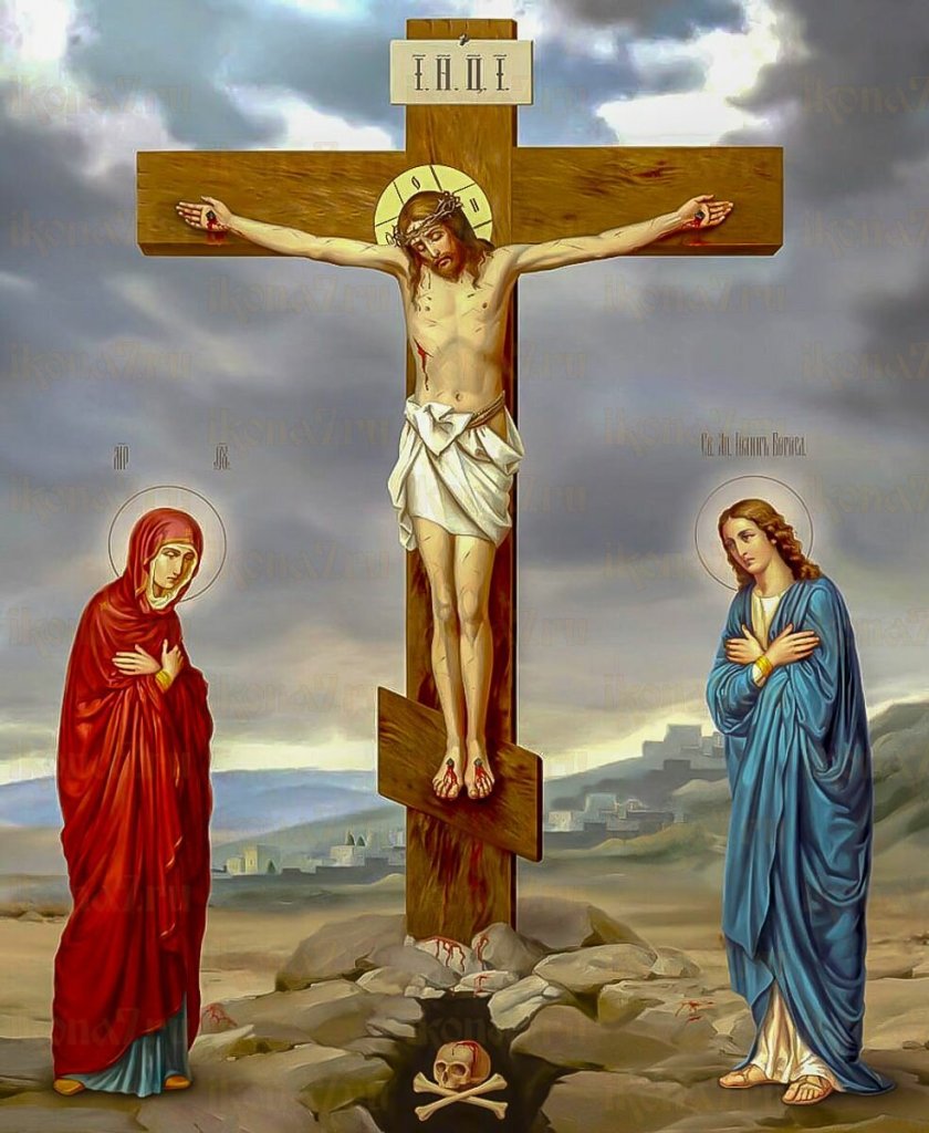 И, придя на место, называемое Голгофа, что значит: «Лобное место», 34 дали Ему пить уксуса, смешанного с желчью; и, отведав, не хотел пить. 35 Распявшие же Его делили одежды Его, бросая жребий; 36 и, сидя, стерегли Его там; 37 и поставили над головою Его надпись, означающую вину Его: «Сей есть Иисус, Царь Иудейский». 38 Тогда распяты с Ним два разбойника: один по правую сторону, а другой по левую. 39 Проходящие же злословили Его, кивая головами своими 40 и говоря: Разрушающий храм и в три дня Созидающий! спаси Себя Самого; если Ты Сын Божий, сойди с креста. 41 Подобно и первосвященники с книжниками и старейшинами и фарисеями, насмехаясь, говорили: 42 других спасал, а Себя Самого не может спасти; если Он Царь Израилев, пусть теперь сойдет с креста, и уверуем в Него; 43 уповал на Бога; пусть теперь избавит Его, если Он угоден Ему. Ибо Он сказал: Я Божий Сын. 44 Также и разбойники, распятые с Ним, поносили Его.