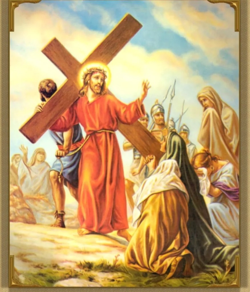 30 и плевали на Него и, взяв трость, били Его по голове. 31 И когда насмеялись над Ним, сняли с Него багряницу, и одели Его в одежды Его, и повели Его на распятие. 32 Выходя, они встретили одного Киринеянина, по имени Симона; сего заставили нести крест Его. 33